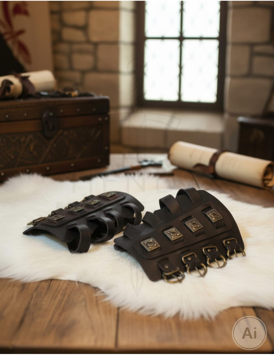 Con dettagli incisi e decorazioni dorate, questi bracciali non solo rappresentano il simbolismo del tuo clan, ma aggiungono anche un tocco di distinzione alla tua armatura o abbigliamento. Progettati per adattarsi facilmente grazie alle fibbie sul retro, si adattano bene a diverse taglie e stili, ideali sia per guerrieri che per signori. Che si tratti di giochi di ruolo, ricreazioni storiche o una festa a tema, il loro design robusto ed elegante garantirà che tu sia pronto per la battaglia.