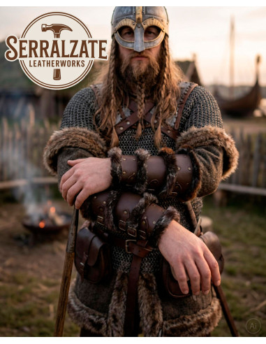 Bracciali vichinghi in pelle marrone scuro con pelliccia sintetica