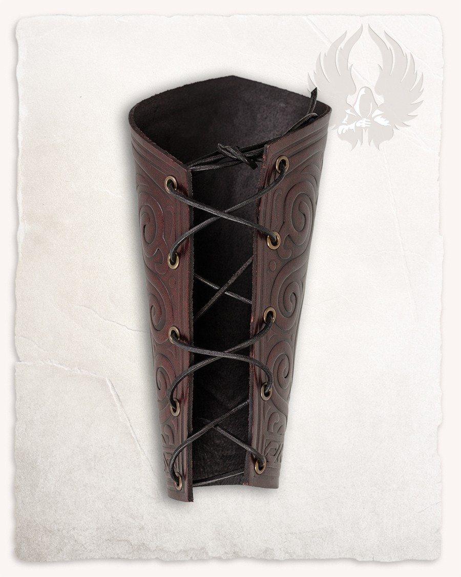 La forma conica si adatta all'avambraccio in modo naturale, offrendo sostegno e libertà di movimento al tempo stesso, per farti sentire a tuo agio durante lunghi periodi, sia in ricreazioni, eventi o nel giorno per giorno come accessorio caratteristico. Il rilievo lavorato evita la monotonia visiva, esaltando la silhouette del braccio e creando un effetto protettivo e decorativo.