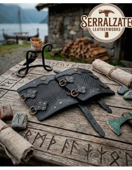 Bracciali Guerriero Vichingo in Pelle Nera