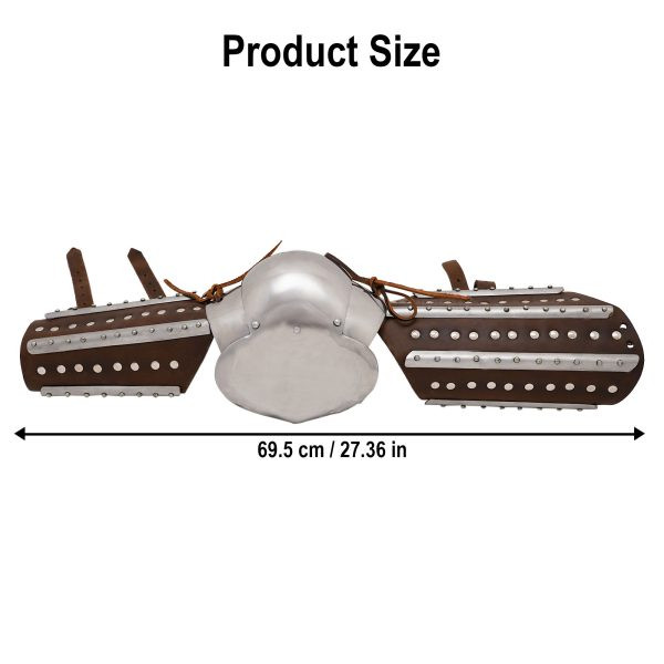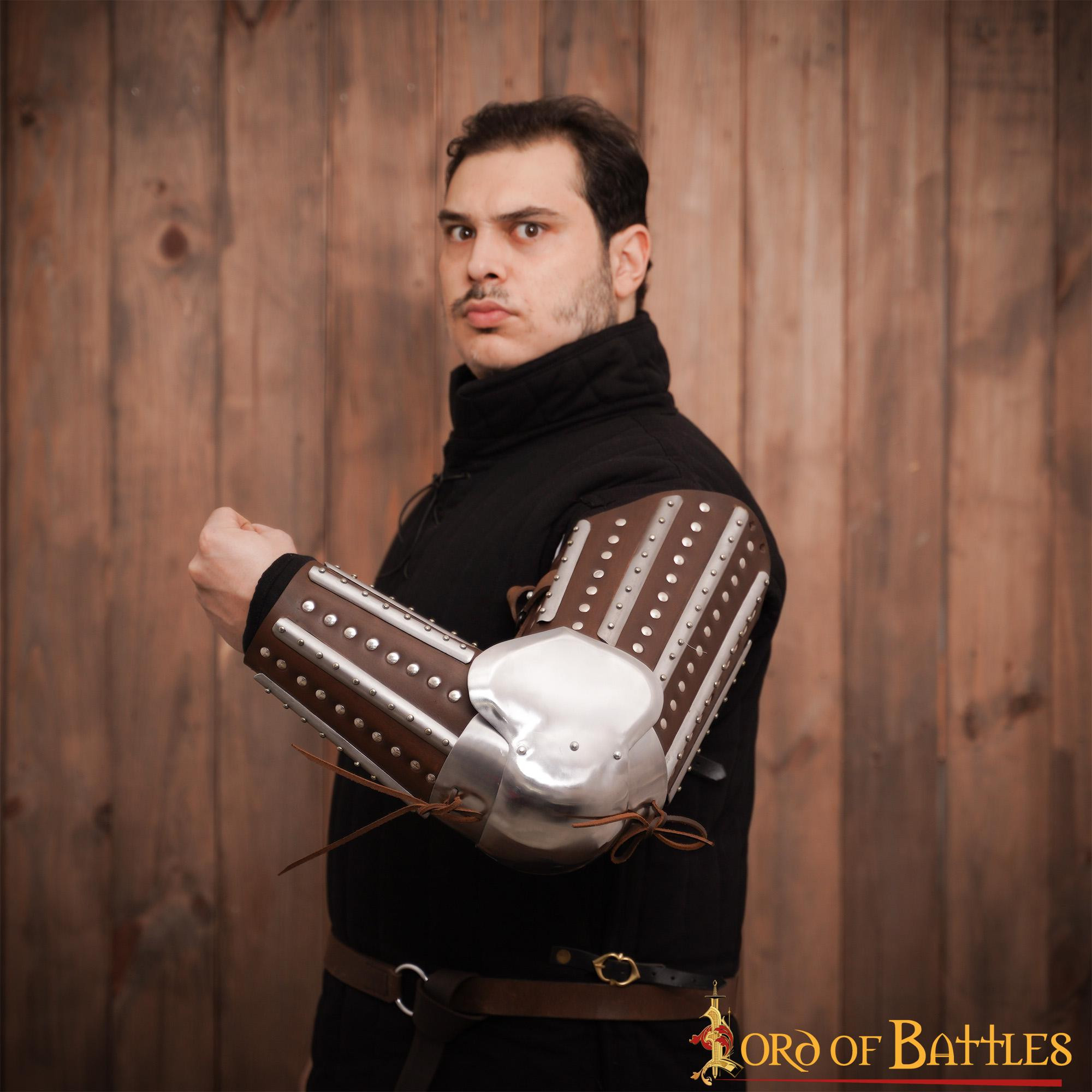 Set di bracciali e schinieri medievali in acciaio modello Adam, finitura annerita