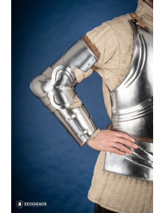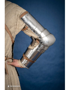 Braccia medievali in acciaio modello Landsknecht, finitura annerita