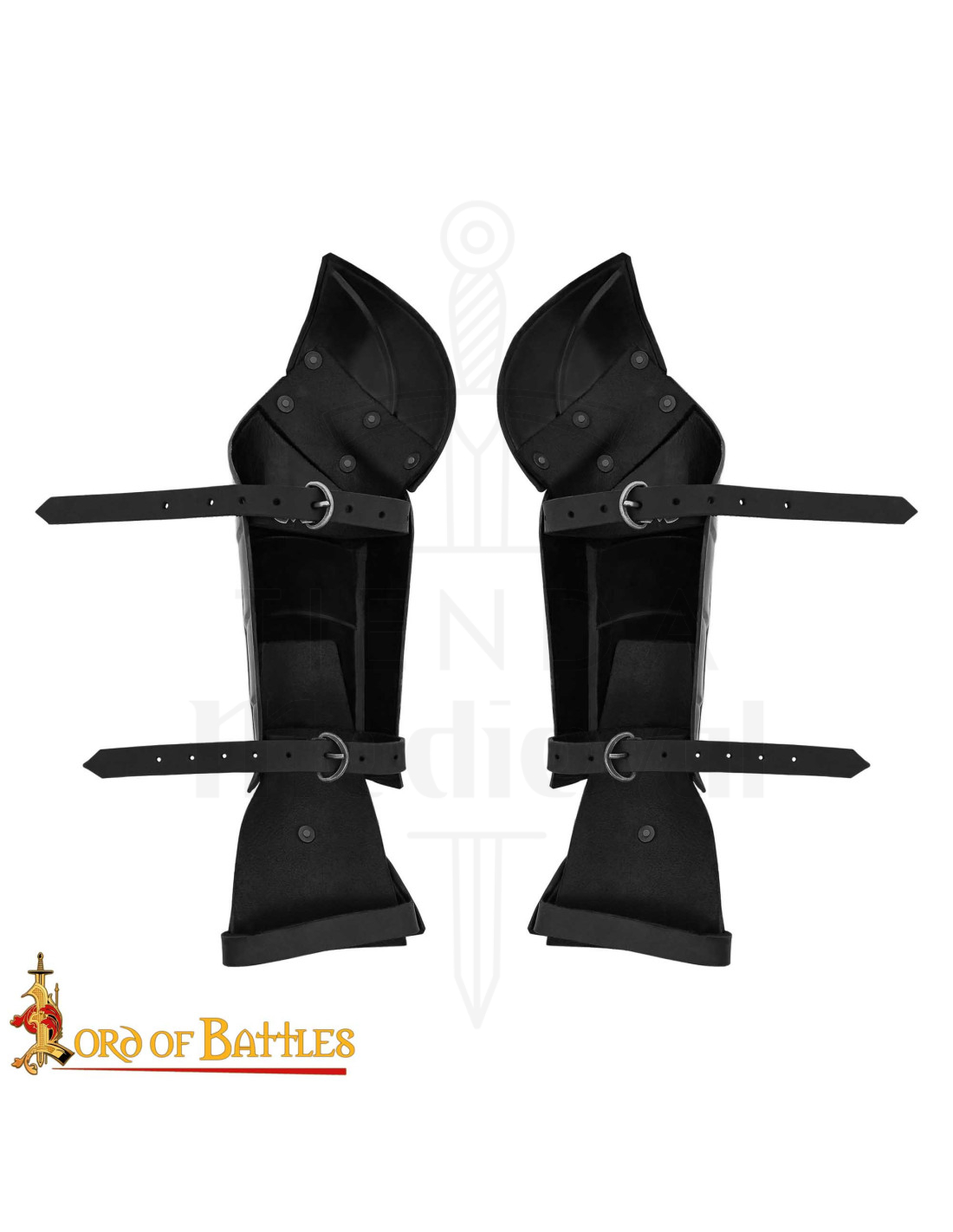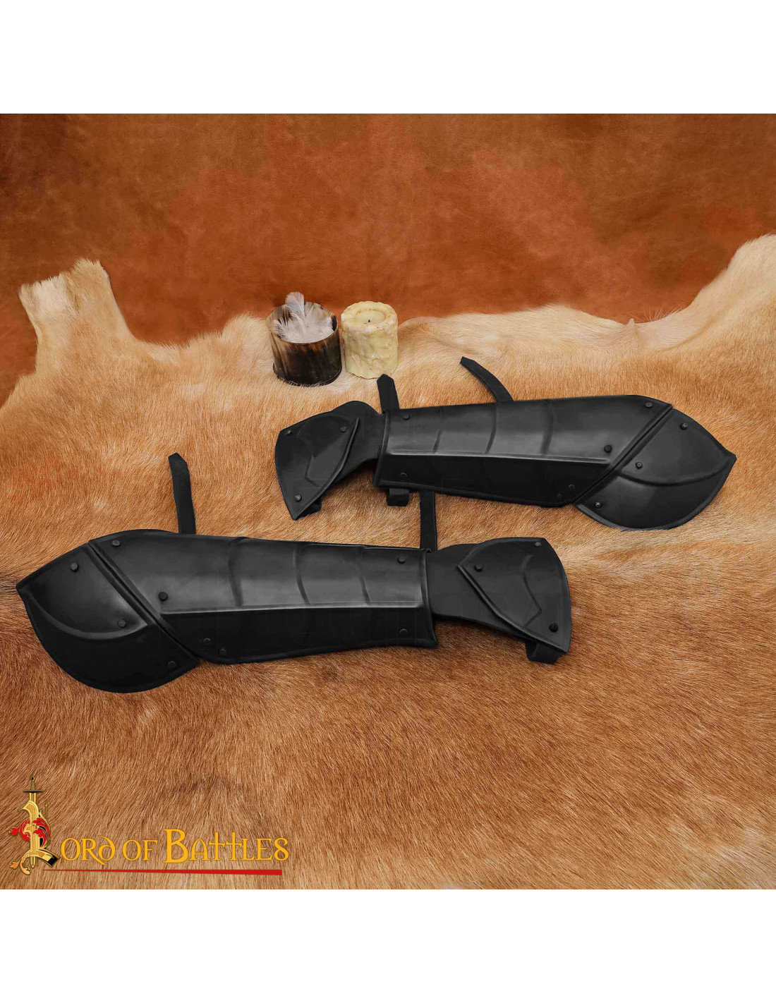 Il design include estensioni e linee che evocano la protezione completa dell'avambraccio e della mano, con forme che ricordano le grebe tradizionali, conferendo un'estetica guerriera ed elegante allo stesso tempo. La struttura simmetrica si adatta a entrambi i lati del corpo, e la sua regolazione pensata per la maggior parte delle taglie mantiene i pezzi in posizione durante combattimenti e scene dinamiche, in modo che tu possa concentrarti solo sull'interpretazione.