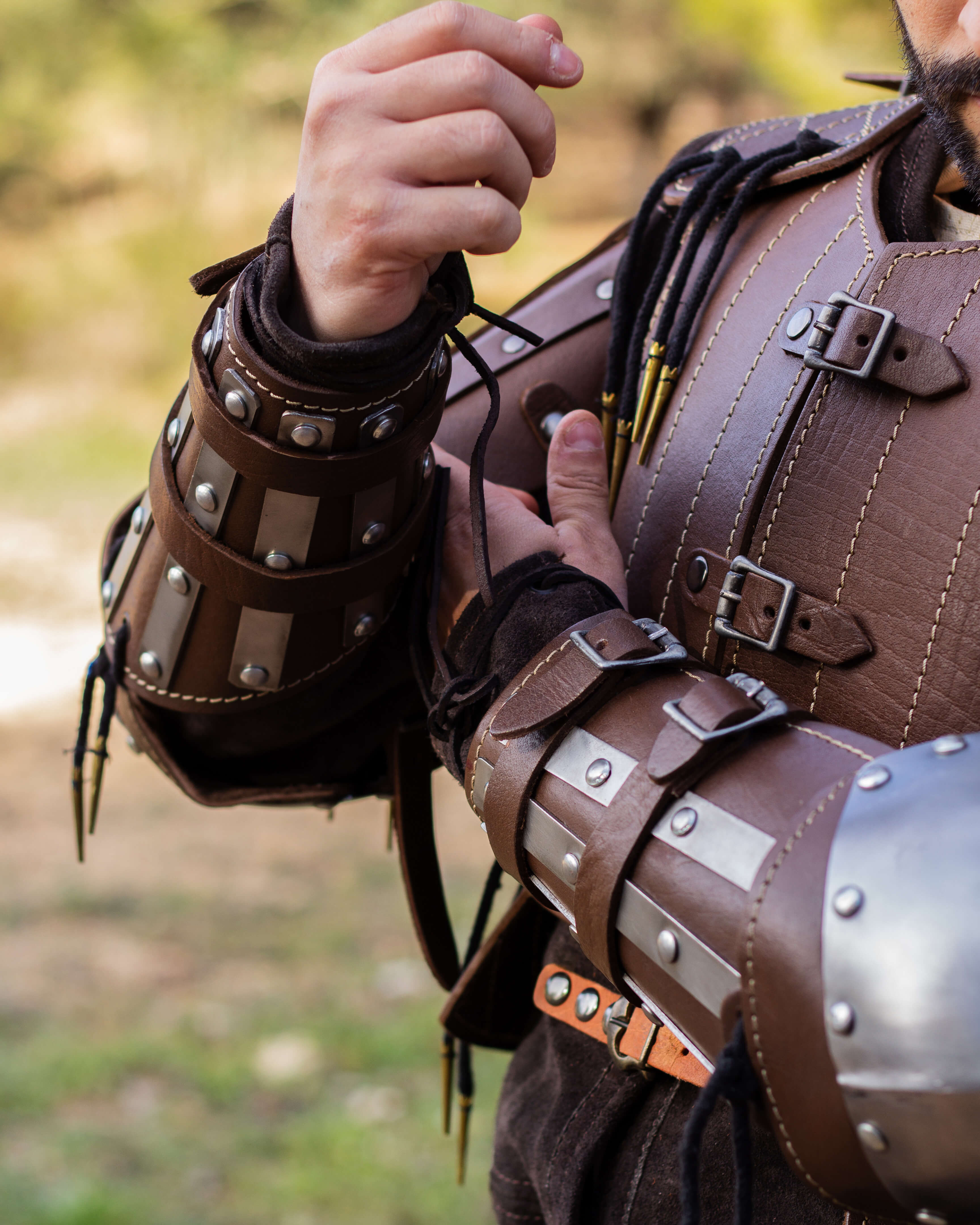 Set di bracciali e schinieri di protezione in acciaio