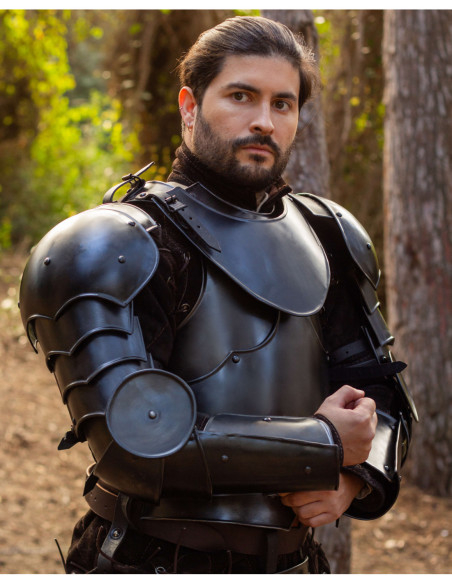 Set di bracciali e schinieri medievali modello Lucas, finitura lucida