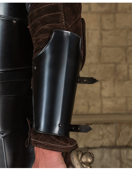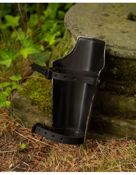 La nervatura centrale non è solo un dettaglio estetico, ma offre rigidità aggiuntiva alla struttura, così che la protezione si sente ferma e affidabile, senza rinunciare alla leggerezza. Quando consideri l'opzione di acquistare Bracciali medievali modello Markward, finitura annerita, apprezzerai come quel sottile rilievo affina il pezzo, facendolo apparire sottile e resistente allo stesso tempo.