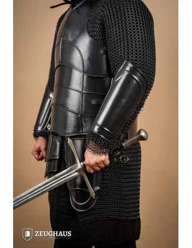 Questi bracciali trasmettono quella sensazione: design minimalista che sembra scolpito per esaltare la silhouette dell'avambraccio, offrendo protezione solida senza aggiungere volume superfluo. La finitura annerita conferisce loro un'aria sobria e moderna, perfetta per coloro che cercano uno stile serio e versatile, sia in ricreazioni storiche che in lavori di ambientazione o collezioni.