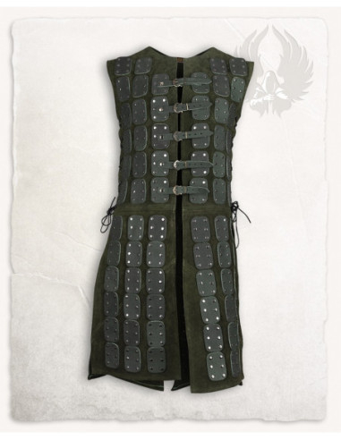 Brigantina medieval modello Osric in pelle, colore verde.