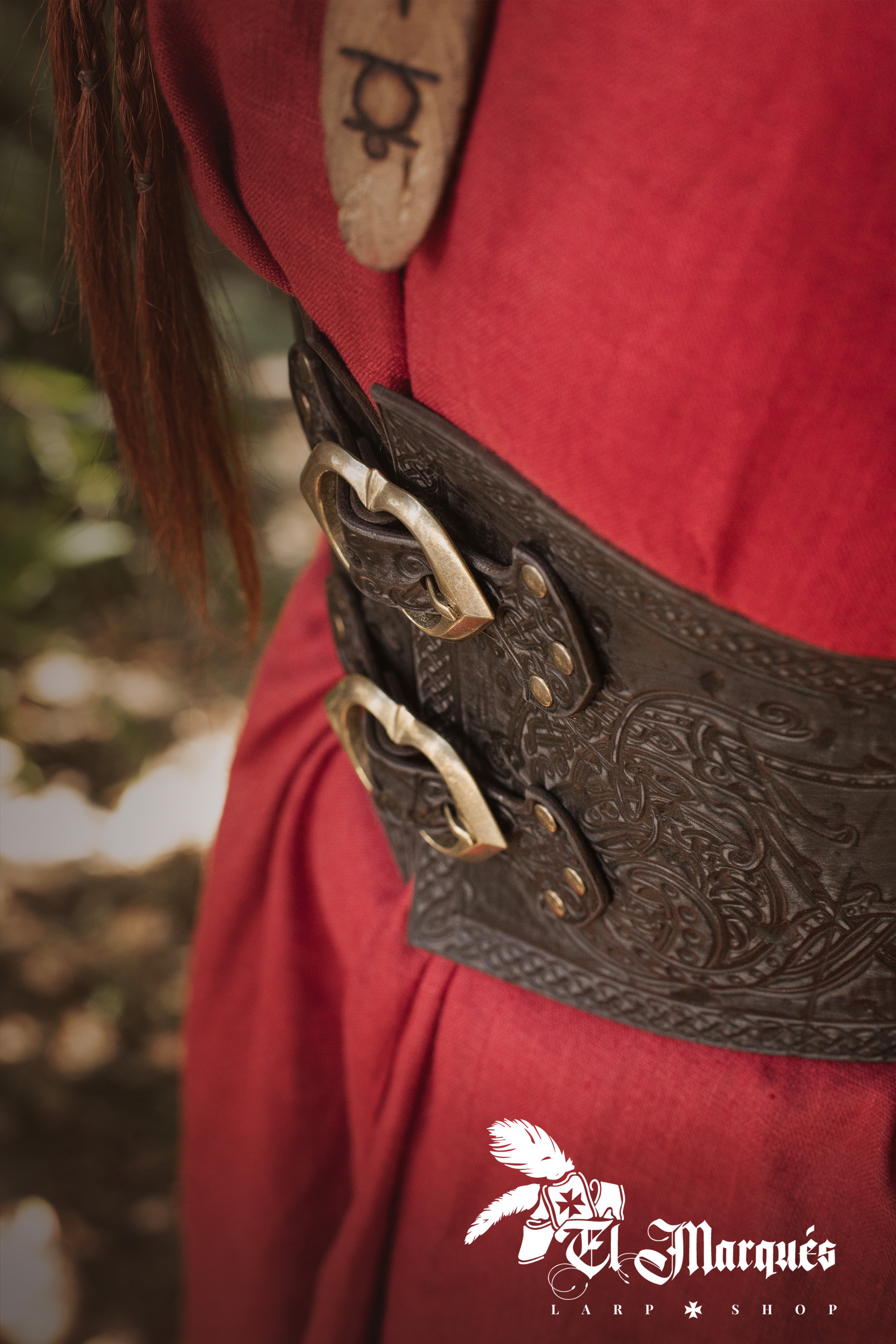 Scopri la Cintura Corsetto Vichingo Valkiria - Marrone de El Marqués de LARP, un accessorio progettato per coloro che cercano di canalizzare la forza e l'audacia di una autentica fanciulla scudo. Questa cintura non è solo un complemento, ma una porta verso un mondo pieno di storie epiche e leggende nordiche. Con il suo design ampio e l'incisione elaborata di ispirazione vichinga, diventerà l'elemento di punta del tuo outfit, ideale sia per eventi di LARP, ricostruzioni storiche o per essere indossato con stile in qualsiasi occasione speciale.