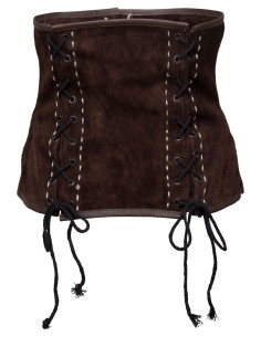 Il marrone scuro del camoscio, abbinato ai dettagli in una tonalità più chiara, crea un contrasto visivo che cattura l'attenzione. Non è solo un corsetto, è una dichiarazione di intenti, un simbolo della tua passione per la fantasia e la storia.