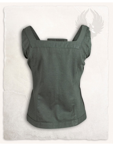 La pelle lavorata a mano offre un'estetica invecchiata e robusta, che oltre a proteggere il torso accompagna ogni movimento con fermezza e libertà. Le lamiere curve e i dettagli in rilievo modellano la silhouette, esaltando elegantemente il busto e la vita, mentre i ribattini metallici rinforzano le giunture, dando un aspetto artigianale e affidabile. Se cerchi di acquistare il Corpetto medievale in pelle modello Lilith, colore marrone, troverai un pezzo pensato per combinare una presenza guerriera e una finitura sofisticata.