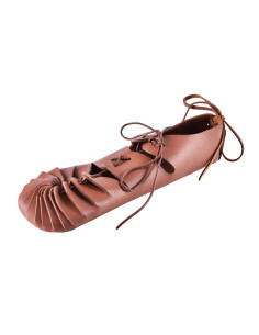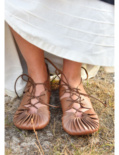 Stivaletti medievali in pelle marrone con lacci laterali