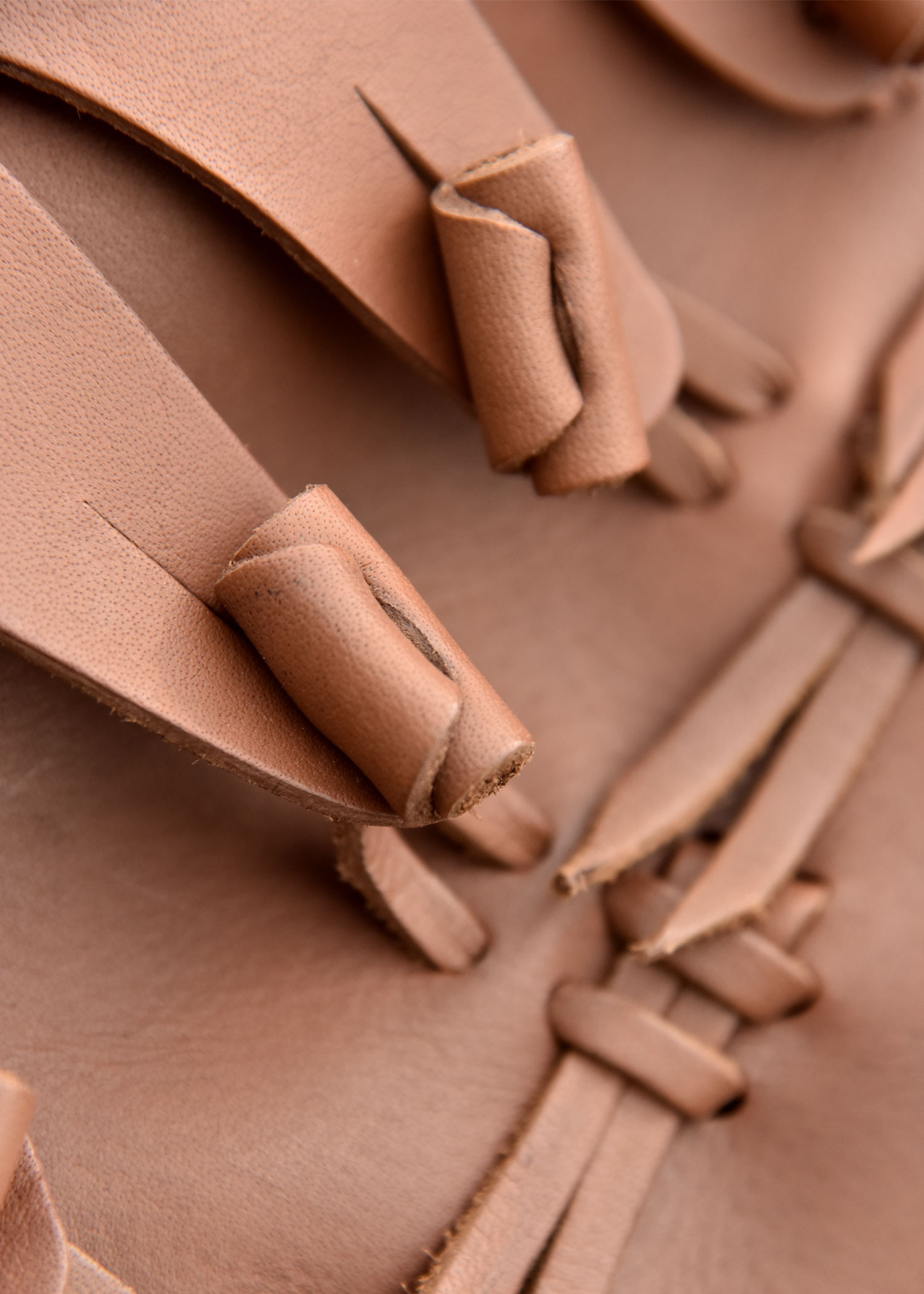 Immagina di portare ad ogni passo un pezzo di storia vichinga che si adatta perfettamente a te. Questi stivali alti catturano l'essenza dei secoli IX e X per offrirti un calzature che non solo si distingue per la sua bellezza artigianale, ma anche per la vestibilità personalizzata grazie alle pratiche chiusure a nodo che permettono di adattarli alla forma del tuo polpaccio.
