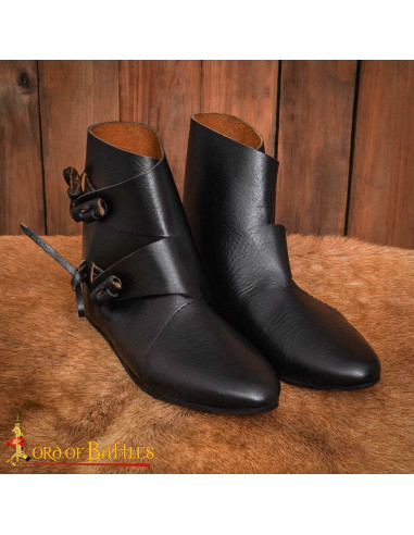 Sperimenta la sensazione di essere un guerriero vichingo, commerciante o villano con questi stivaletti ispirati all'artigianato ancestrale, perfetti per completare un look storico da capo a piedi e creare una presenza autentica ai tuoi eventi a tema vichingo o medievale.