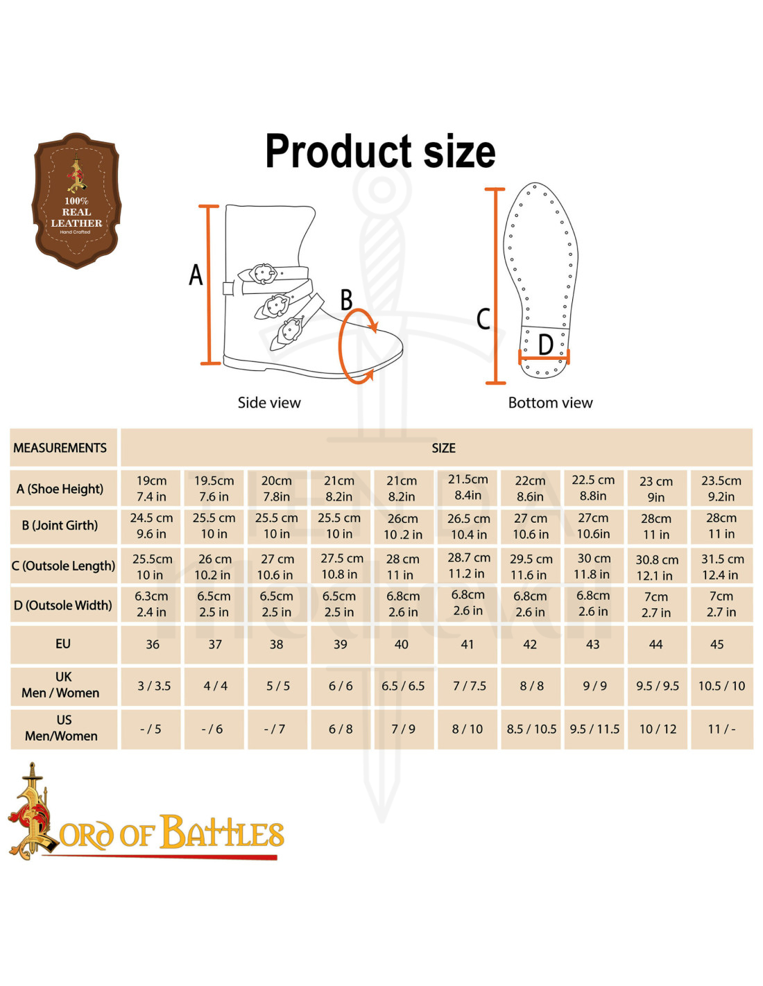 Se desideri acquistare Stivaletti medievali in cuoio marrone del XV secolo con 3 fibbie: Il nome ufficiale del prodotto, ricorda che sono disponibili in misura maschile e il taglio aderente favorisce una vestibilità sicura; chi non utilizza taglie da uomo può consultare la conversione per trovare la propria misura ideale. Ispirati alla calzatura della fine del Medioevo, sono un pezzo perfetto per ricreazioni, teatro o per aggiungere un'aria artigianale e distintiva al tuo guardaroba quotidiano.