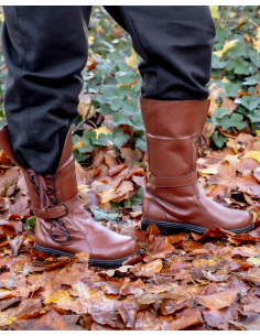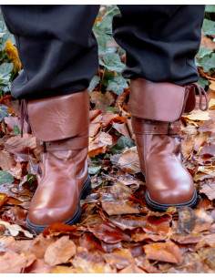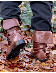 Winingas medievali in cotone marrone, con fibule in ottone