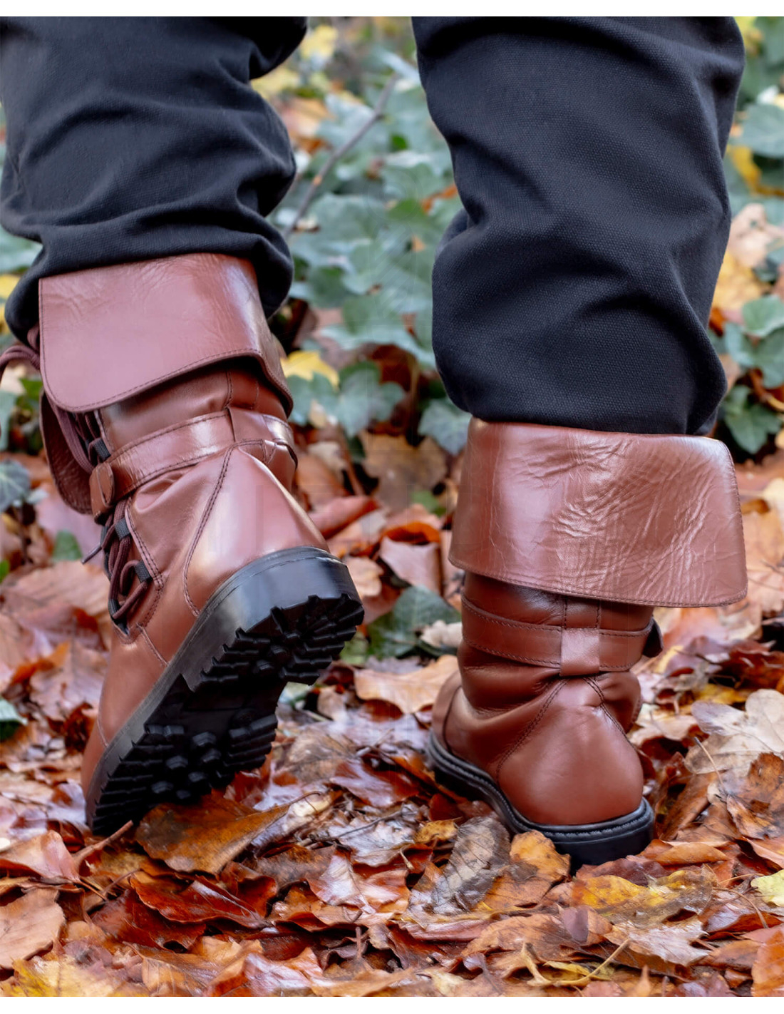 Gli stivali medievali in cuoio modello Dawson, colore marrone combinano presenza storica con la robustezza di una calzatura pensata per esterni. La finitura esterna lucida e le cuciture rinforzate non solo aggiungono estetica, ma proteggono le zone più esposte, così l'uso continuo non compromette l'aspetto. La chiusura con lacci permette di regolare la calzata in modo facile e rapido, mentre la cinghia con fibbia dà un sostegno extra, traducendosi in passi più stabili e fiducia nel muoverti su terreni irregolari.