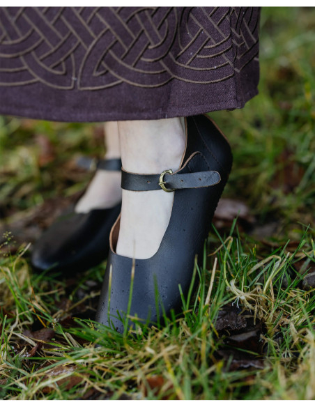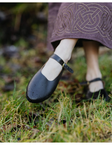 Se cerchi di unire autenticità e comfort, questi mocassini si adattano perfettamente sia a ricreazioni storiche che a look ispirati a epoche passate, funzionando bene da abiti signorili a look più rustici. Se vuoi acquistare i mocassini in pelle modello Jadwiga, colore nero, troverai in essi un pezzo che respira carattere, pronto a accompagnarti in ogni scena e nella vita quotidiana.