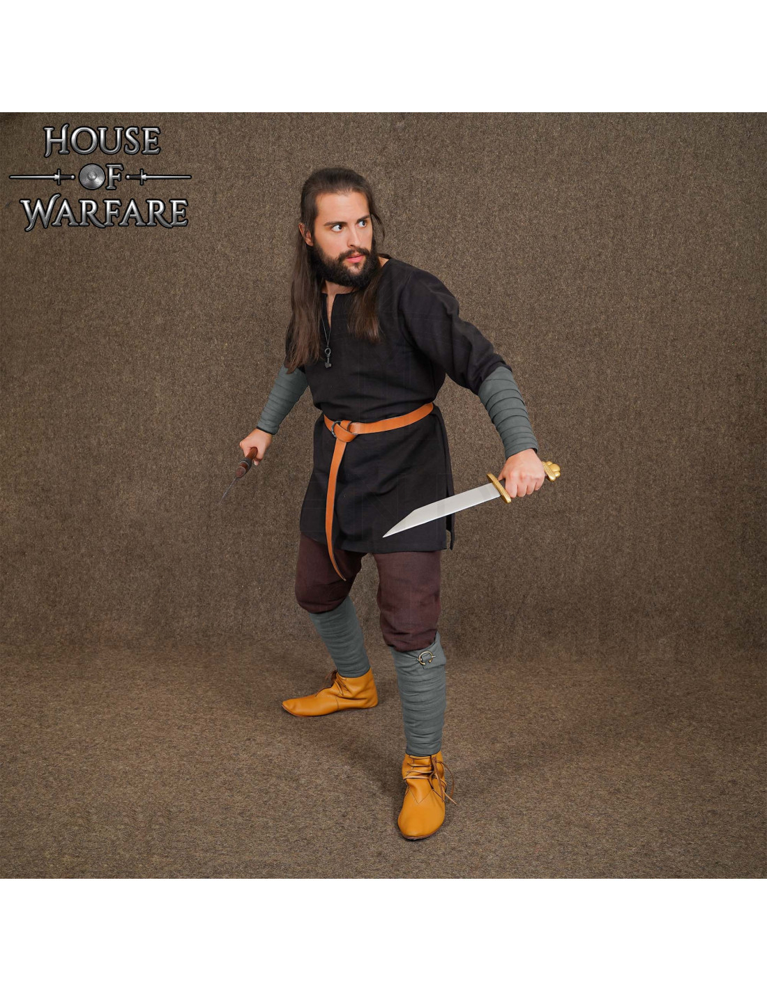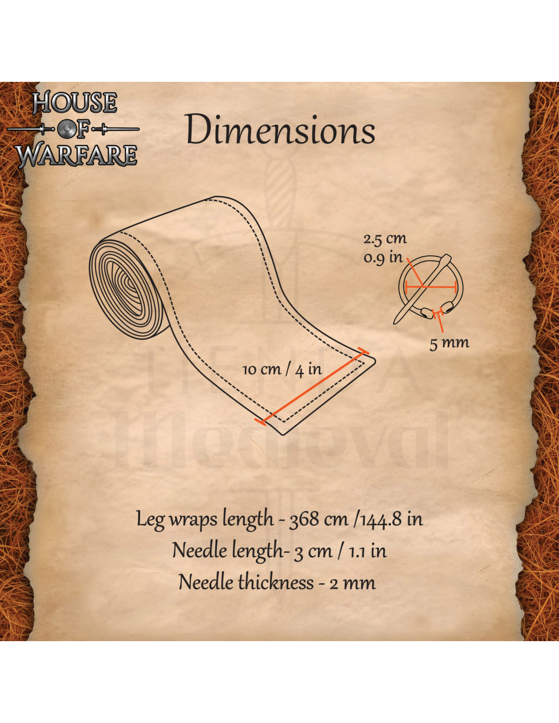 Queste winingas medievali in cotone grigio, con fibbie in ottone ti offrono proprio questo, una finitura autentica che sostiene i pantaloni, protegge i polpacci e aggiunge quel tocco guerriero senza rinunciare al comfort. Il cotone traspirante consente di indossarle per lunghe giornate senza fastidi, mentre il tessuto resistente regge l'uso continuo in eventi, prove e rappresentazioni.