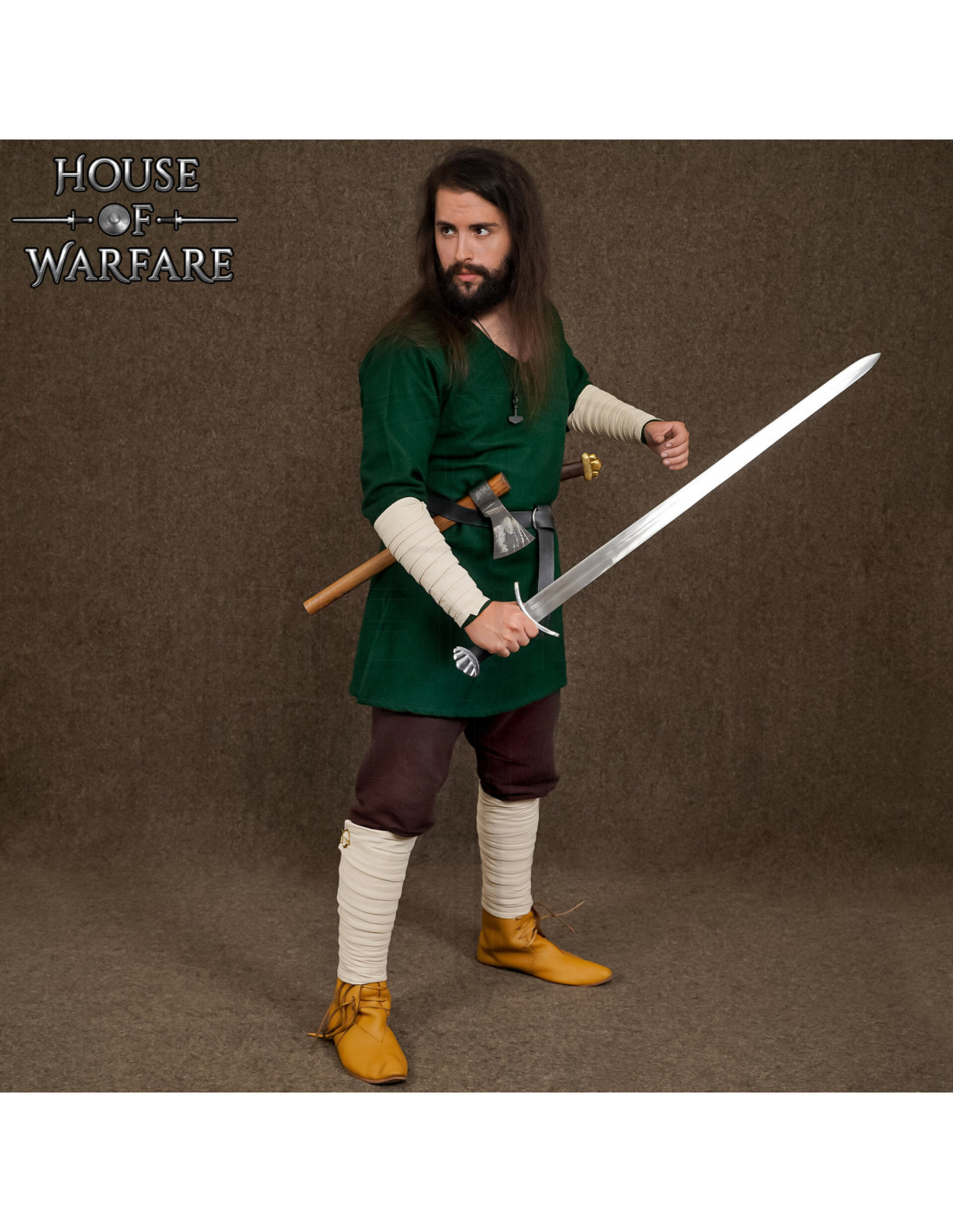 La loro generosa lunghezza permette di avvolgere completamente il polpaccio, creando protezione contro il terreno difficile e evitando il contatto diretto con elementi dell'equipaggiamento, senza rinunciare all'eleganza rustica di un'estetica vichinga e medievale fedele all'epoca. Il design pensato per un uso prolungato garantisce comfort, sostegno e una presenza visiva che completa il personaggio.