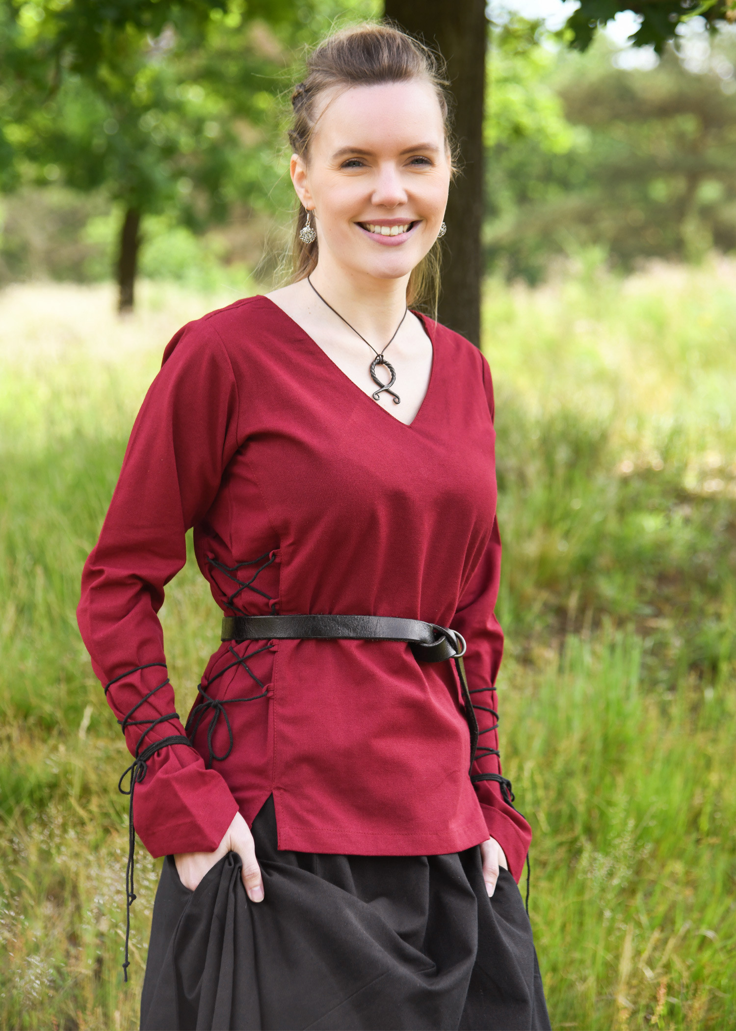 Richiesta su Blusa medieval modello Aila in cotone, colore rosso