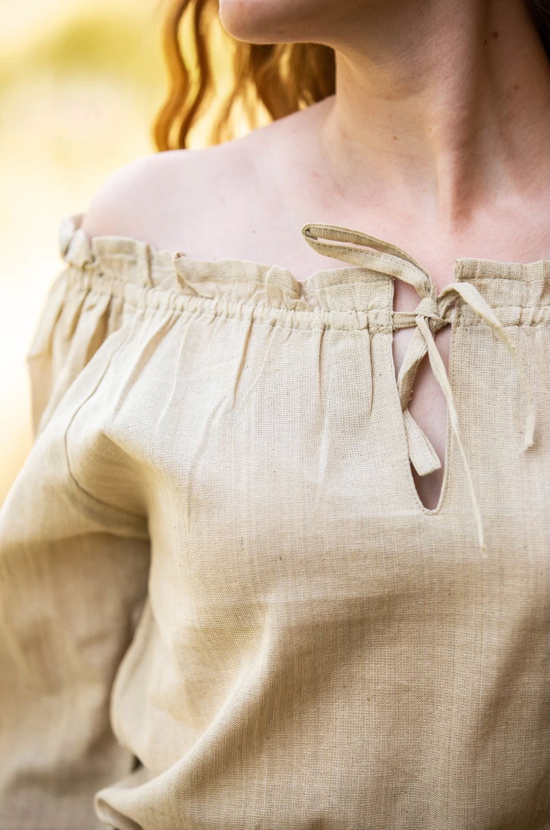 Richiesta su Blusa medievale color crema, con maniche lunghe