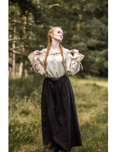 Scopri l'eleganza e il fascino dei tempi medievali con la nostra camicetta medievale Morgan bianco naturale. Realizzata con i migliori materiali, questa blusa a maniche lunghe con lacci ti trasporterà in un mondo di fantasia e romanticismo.