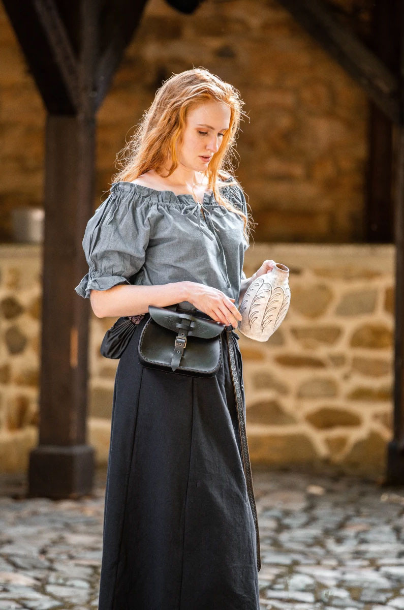Scopri l'eleganza e il fascino della camicetta medievale Verena! Questa camicetta a maniche corte è disponibile in tre colori: blu, bianco e nero, così potrai scegliere quello più adatto al tuo stile. Realizzata in Germania dal rinomato marchio Leonardo Carbone, questa camicetta si distingue per la qualità e il design autenticamente medievale.