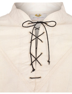 Camicia medievale con lacci a collo alto, marrone chiaro