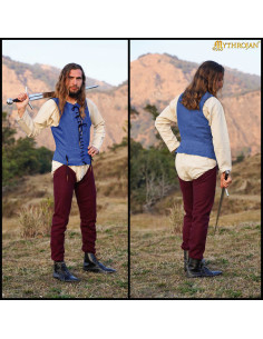 Scopri la 'Camicia medieval senza maniche di colore blu' del prestigioso marchio Lord of Battles, ispirata all'era dei cavalieri del tardo medioevo. Questo design emblematico, basato sul **pourpoint** che i cavalieri indossavano sotto l'armatura nei secoli XIV e XV, combina autenticità storica con praticità moderna, risultando indispensabile per chi ama le ricreazioni storiche, gli eventi LARP e le attività della SCA.
