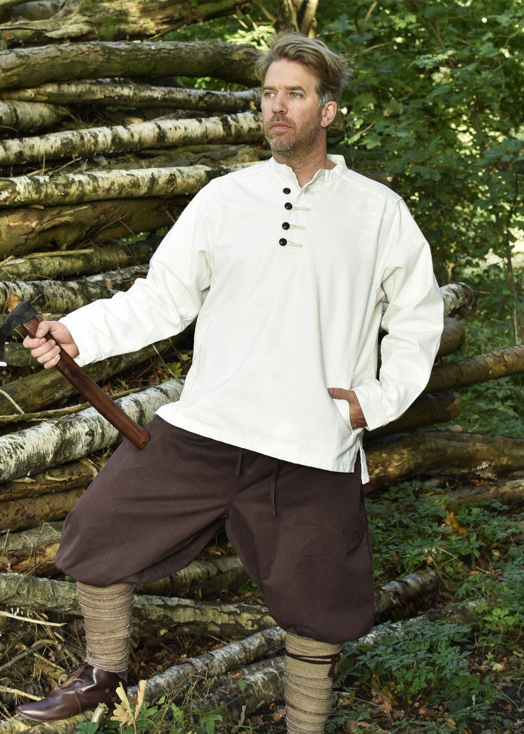 Immagina di sentirti radicato in una tradizione che ti connette con la terra, con la forza e la semplicità del lavoro ben fatto. Sentire il tatto ruvido e resistente del cotone, quella sensazione che ti ancorai a una storia di mani che costruiscono e creano, senza artifici, senza ornamenti inutili. Questa è la sensazione che desideri proiettare, quell'identità che rafforza il tuo carattere di qualcuno autentico e determinato. Per ottenerlo, niente di meglio della camicia da contadino con bottoni, un capo che ti permette di incarnare stili, personaggi e storie con naturalezza, senza perdere mai la tua essenza.