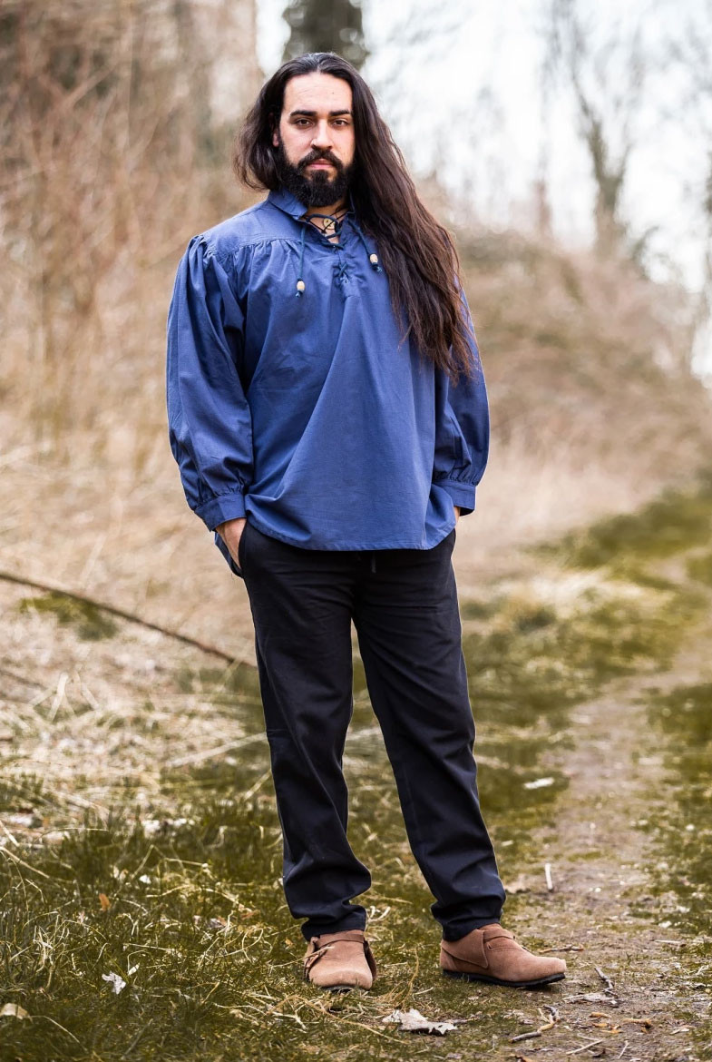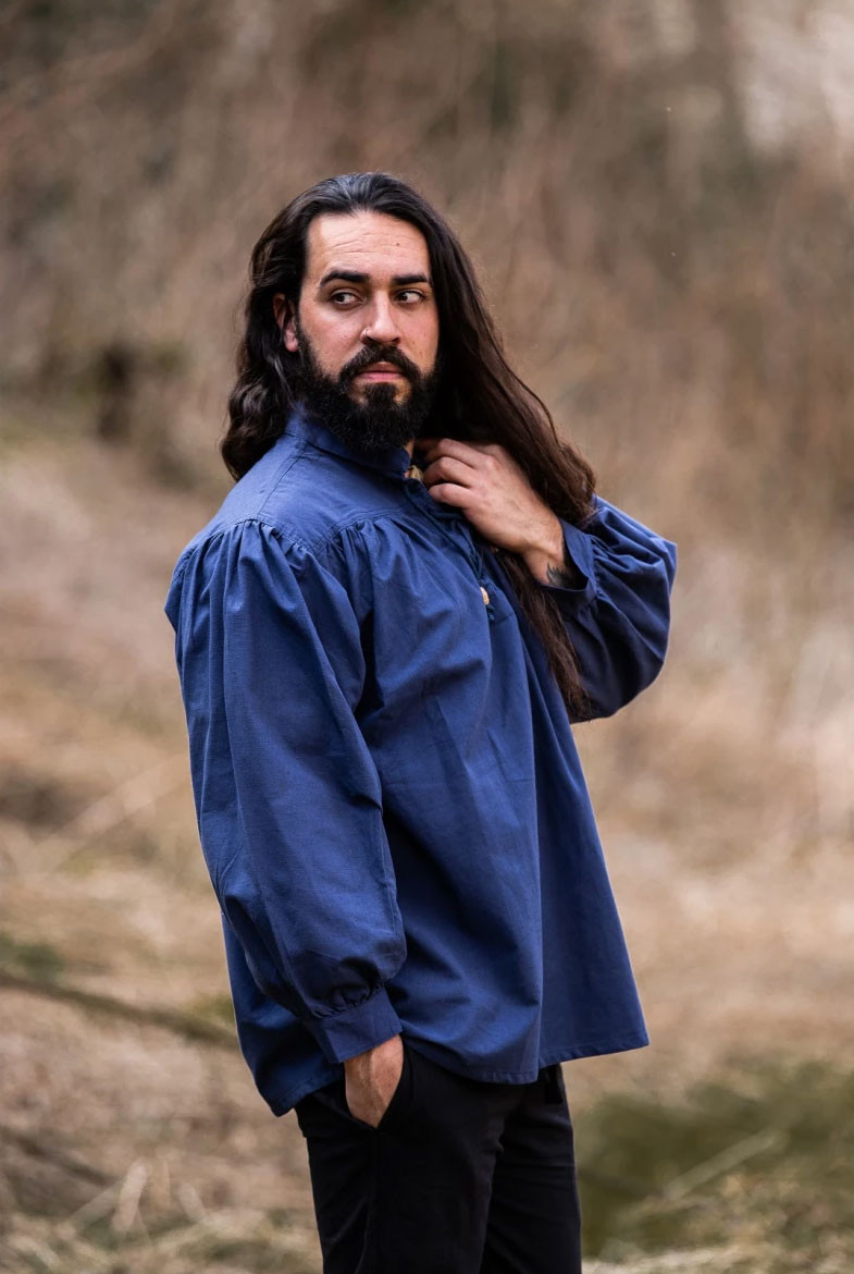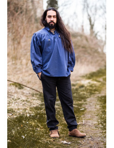 Stai cercando una camicia medievale autentica e di alta qualità? Non cercate oltre! Vi presentiamo la camicia medievale Friedrich in blu con cravatte, un vero tesoro per gli amanti dell'era medievale.