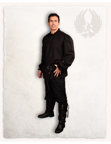 Camicia medievale a maniche lunghe Bastian in nero