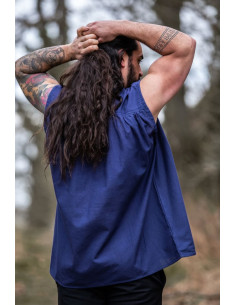 Camicia medievale blu senza maniche, modello Louis