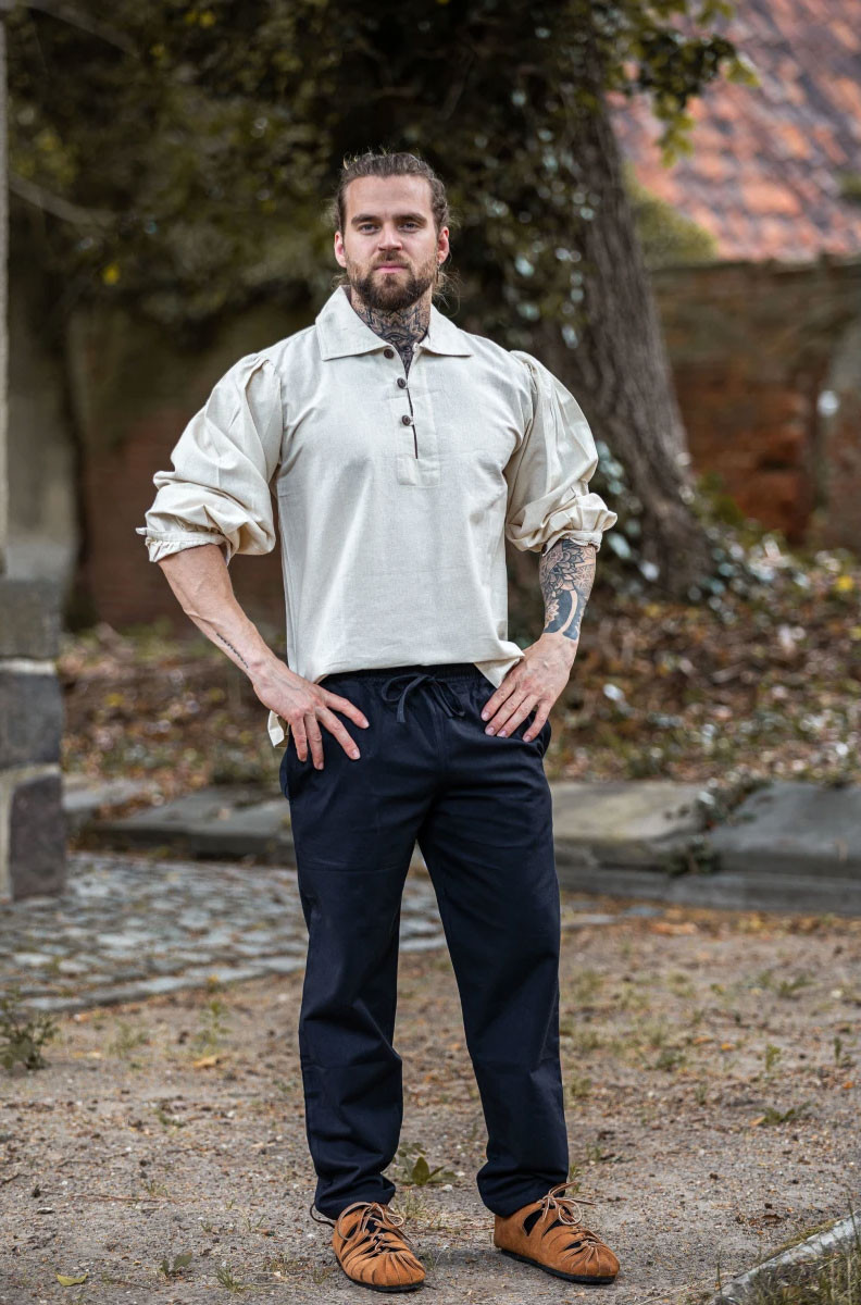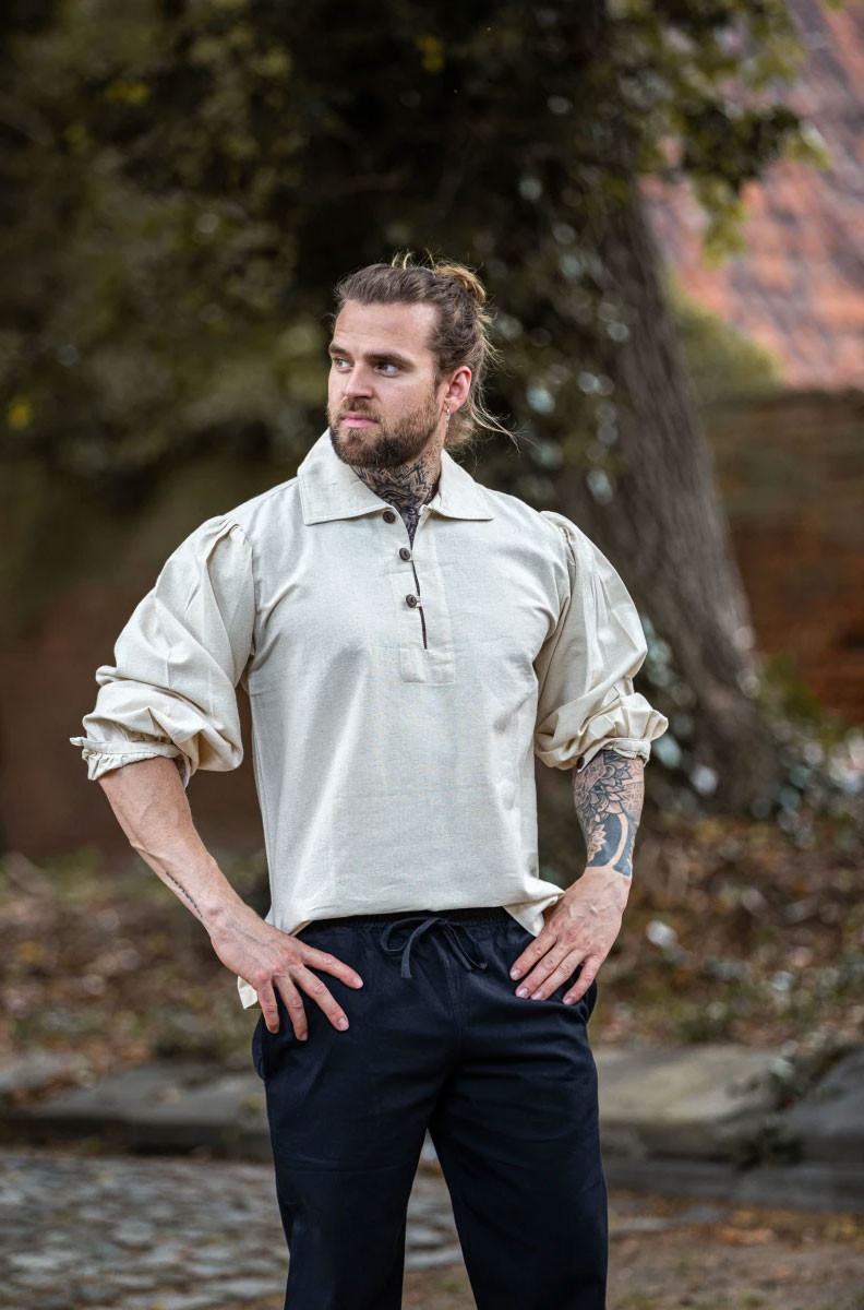 Camicia medievale a collo alto con lacci sulle maniche