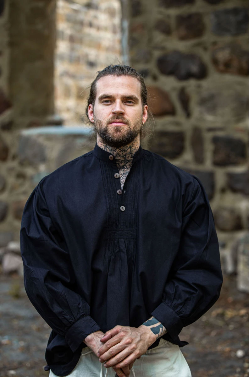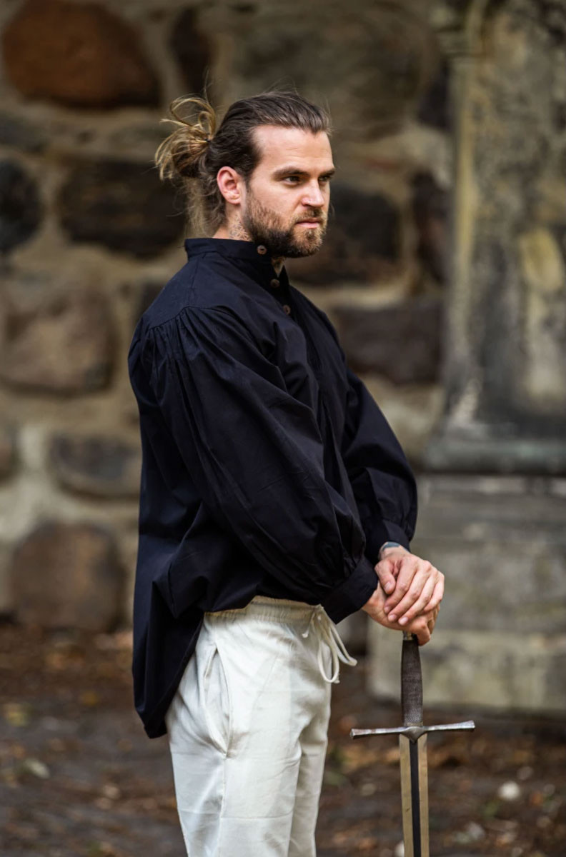 Camicia medievale ampia Oswald, colore nero