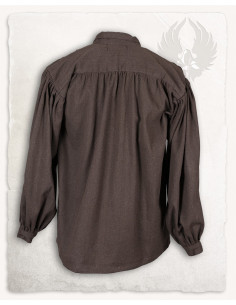 Scopri l'elegante camicia medievale modello Jonathan con cravatte in marrone! Questa camicia in cotone si differenzia dalla camicia -Ansgar- per il colletto aperto e per i bottoni che chiudono i polsini delle maniche. Il suo tessuto in cotone resistente lo rende l'opzione perfetta per le calde giornate estive all'aperto.