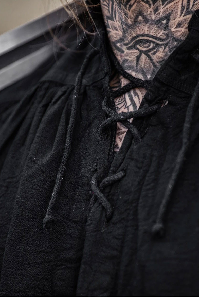 Camicia medievale nera con lacci