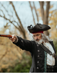 Se desideri acquistare il Cappello da pirata in pelle modello Flint, colore nero, troverai in esso una miscela di funzionalità ed estetica classica: facile da indossare, da fissare e con un aspetto che impone rispetto e fascino in ogni incontro tematico o ricreazione.
