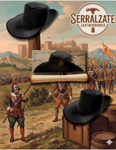 Cappello nero in pelle artigianale del XVII secolo, modello Capitano dei Tercios
