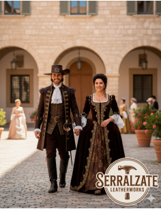 Cappello medievale in pelle Deluxe modello Alatriste, colore marrone