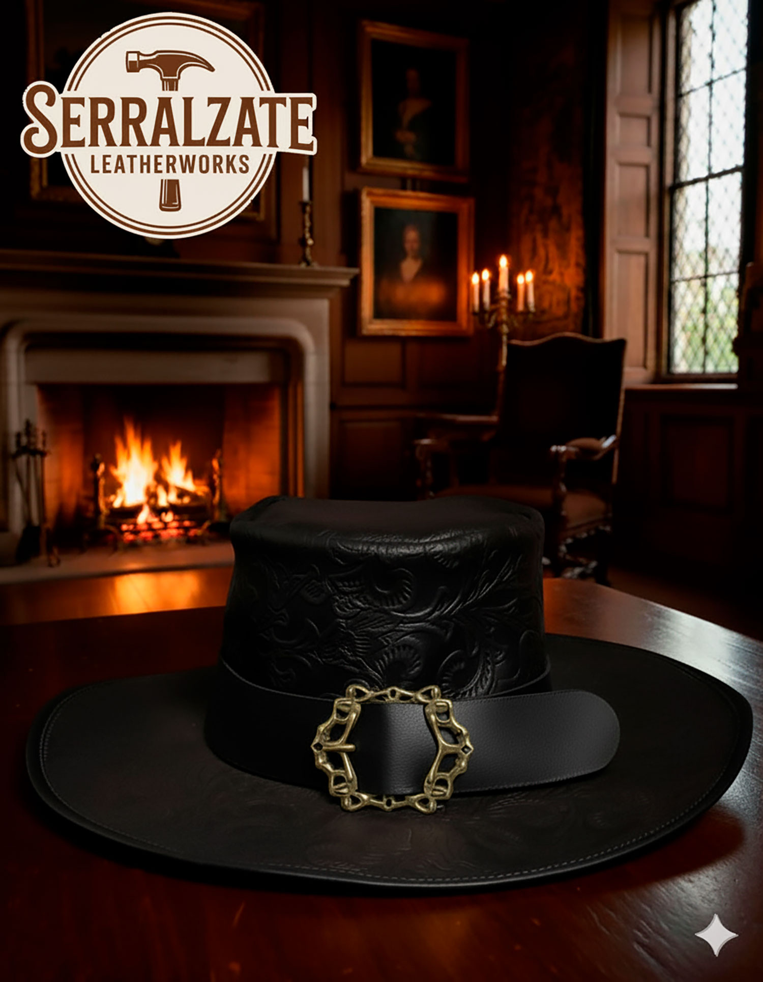 Cappello tricornio da capitano con incisione barocca, cuoio marrone deluxe