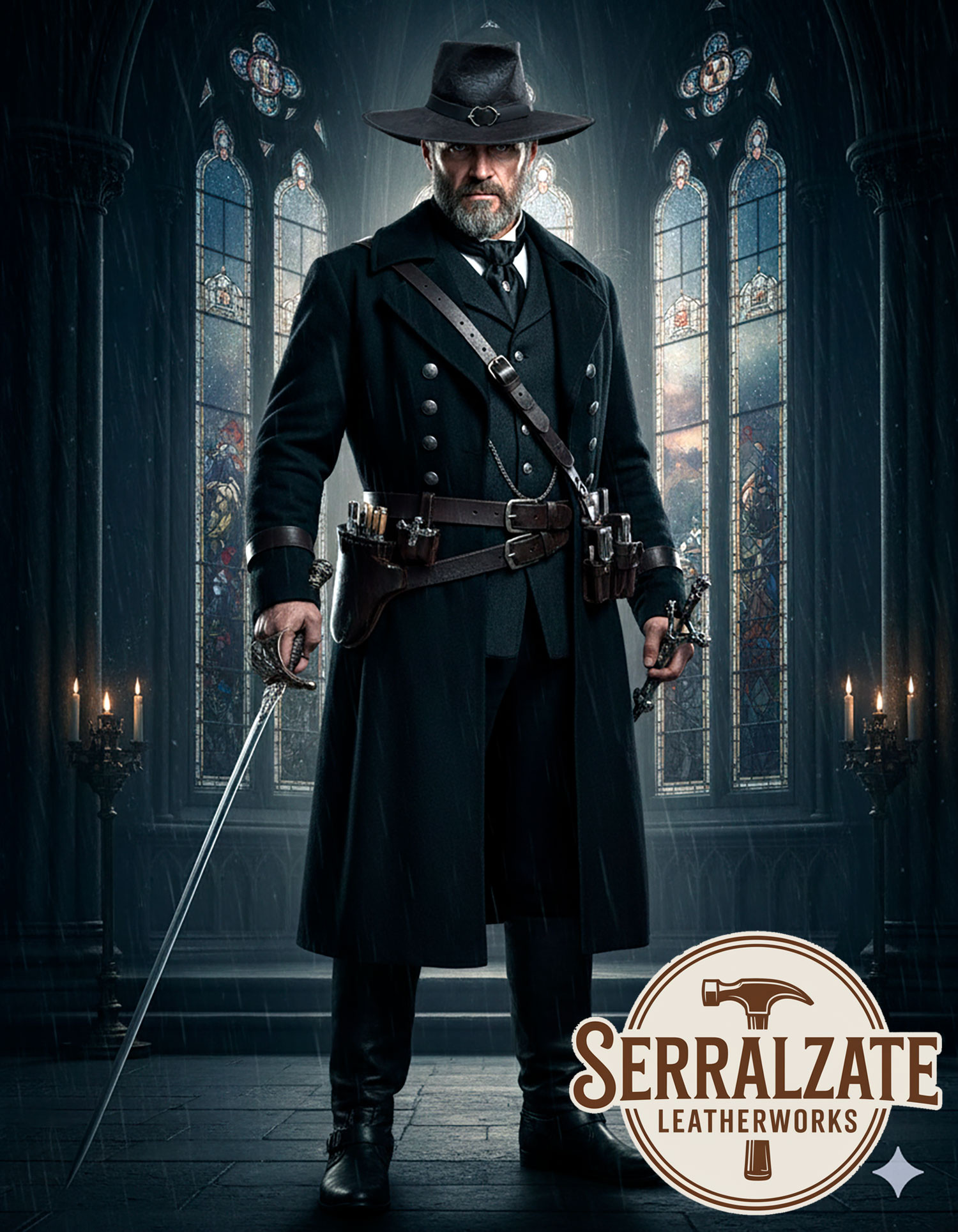 Cappello tricornio da capitano con incisione barocca, cuoio marrone deluxe