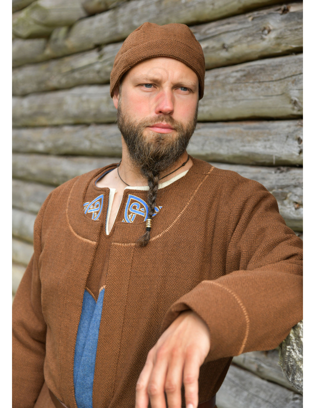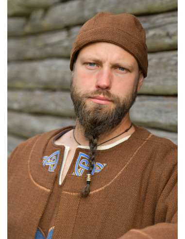 Il design si ispira a ritrovamenti di Hedeby e Birka, due siti chiave per comprendere l'abbigliamento vichingo, conferendo al berretto un'autenticità riconoscibile da chi pratica il reenactment e dagli amanti della storia. Questa connessione con il passato rende indossarlo anche una dichiarazione di stile e rispetto per l'artigianato tradizionale.