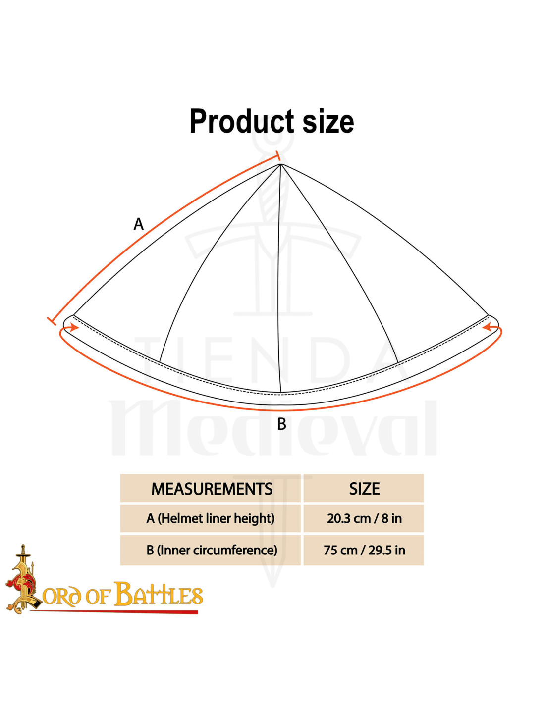 Perfetto sia da indossare da solo nelle ricreazioni che per fungere da fodera interna di caschi in LARP, HEMA o produzioni teatrali, questo articolo è realizzato a mano, quindi ogni pezzo può presentare piccole variazioni che aggiungono carattere e autenticità.