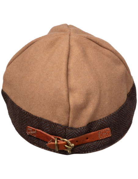 La confezione in un tessuto robusto con aspetto di lana offre una sensazione calda e consistente, che accompagna tutto il giorno senza perdere forma. La silhouette arrotondata e la finitura tipo berretto si adattano con naturalezza ai look di ricreazione storica e anche a proposte più sobrie del giorno, portando personalità senza appesantire.