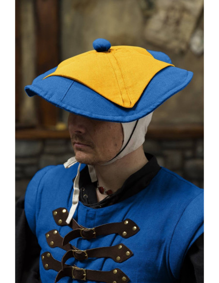 Berretto medievale in cotone modello Rupert, color nero-marrone