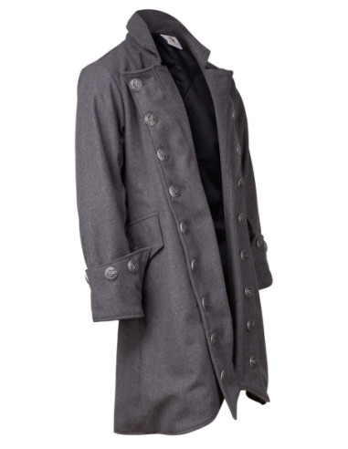 Cappotto da pirata in lana modello Capitano Chad Bucanero, color grigio