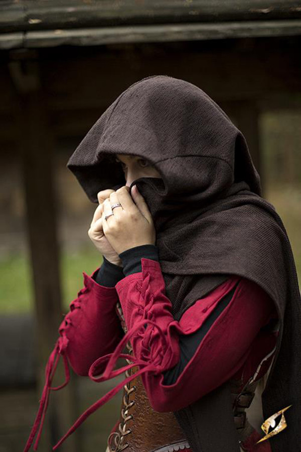 Richiesta su Cappuccio con scialle medievale modello Altaïr marrone scuro