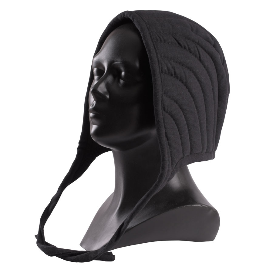 La crepe imbottita nera del guerriero è il complemento ideale per accoglierlo sotto l'elmo o la cotta di maglia. Realizzata in tela 100% cotone, garantisce grande resistenza e durevolezza.